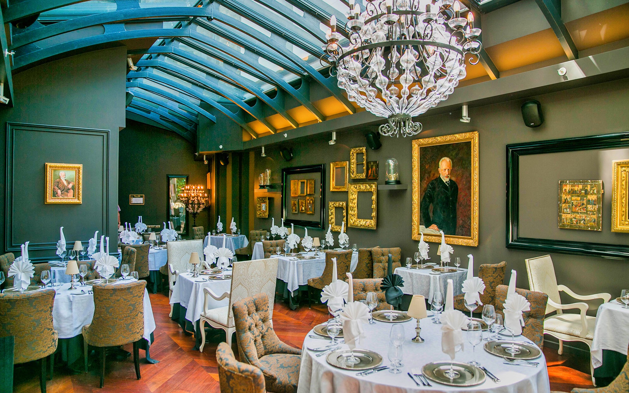 Ravintola Tchaikovskyssä kohtaavat ranskalainen keittiö sekä venäläiset ruokaperinteet. Ravintola on hienostunut ja sopii hyvin paikaksi esimerkiksi juhlaillalliselle. Ravintolan kertoo kotisivuillaan pukukoodiksi smart casual, mutta upeisiin puitteisiin voi lipua juhlavassakin asussa. Listalla on muun muassa ostereita ja tartar-pihviä. Blini-alkuruoka kolmen kaviaarin kanssa maksaa 28 euroa, filet mignon -pihvin hinta on 31 euroa.